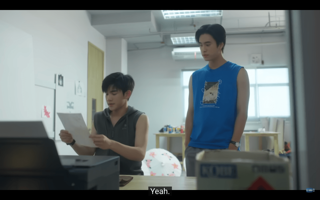 And there’s chemistry there between Atom and Kongthap when they talk about the props that Atom is working on. The endeared look on Kongthap’s face? Good job, Gemini! It’s just that freaking background music. Is there a way I can turn that down? Because it undercuts some great scenes! The music swelling during the trapped under the umbrella scene would have been great but it’s hard to appreciate it when there’s constant scoring happening throughout the show. SOME SCENES CAN BE SILENT.