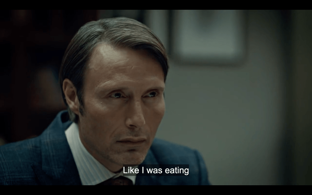 While Will is at Molly Shannon’s crime scene, Hannibal is at Will’s home, feeding Will’s dogs and just rifling through his underwear drawer. I feel like any second now he’s going to take one of Will’s boxers and put it over his head like Timothee Chalamet in Call Me By Your Name. Of course, more observant viewers than me at the time know that Hannibal is setting Will up for a fall later on in the season.