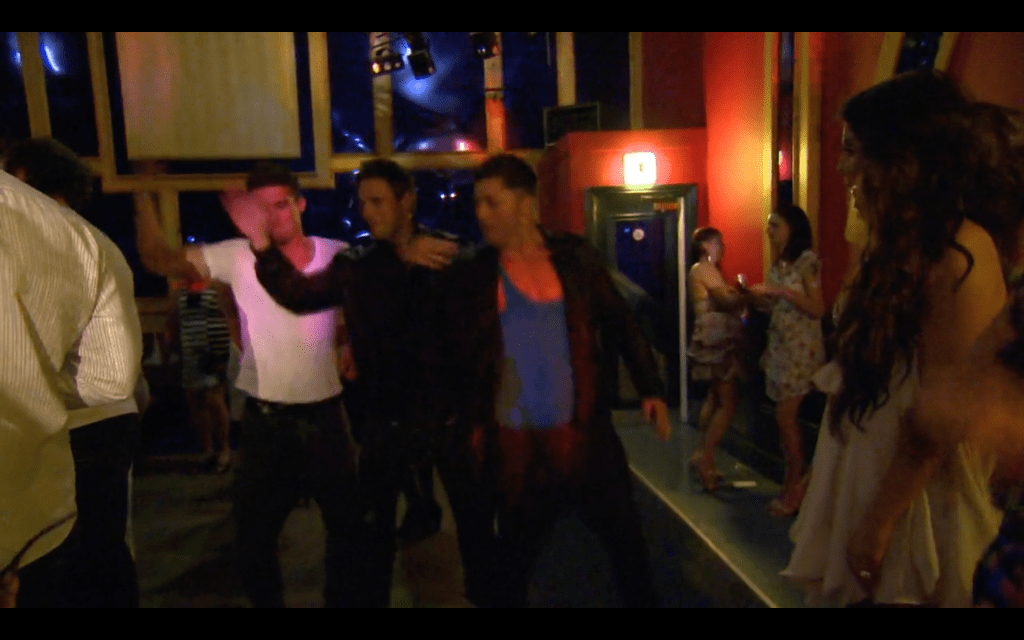 After an awkward time eating what I can only assume is horrible English food, the gang heads down to the ~disco~ and try to do what passes for dancing. Their skins may be tanned but they are still very, very white.