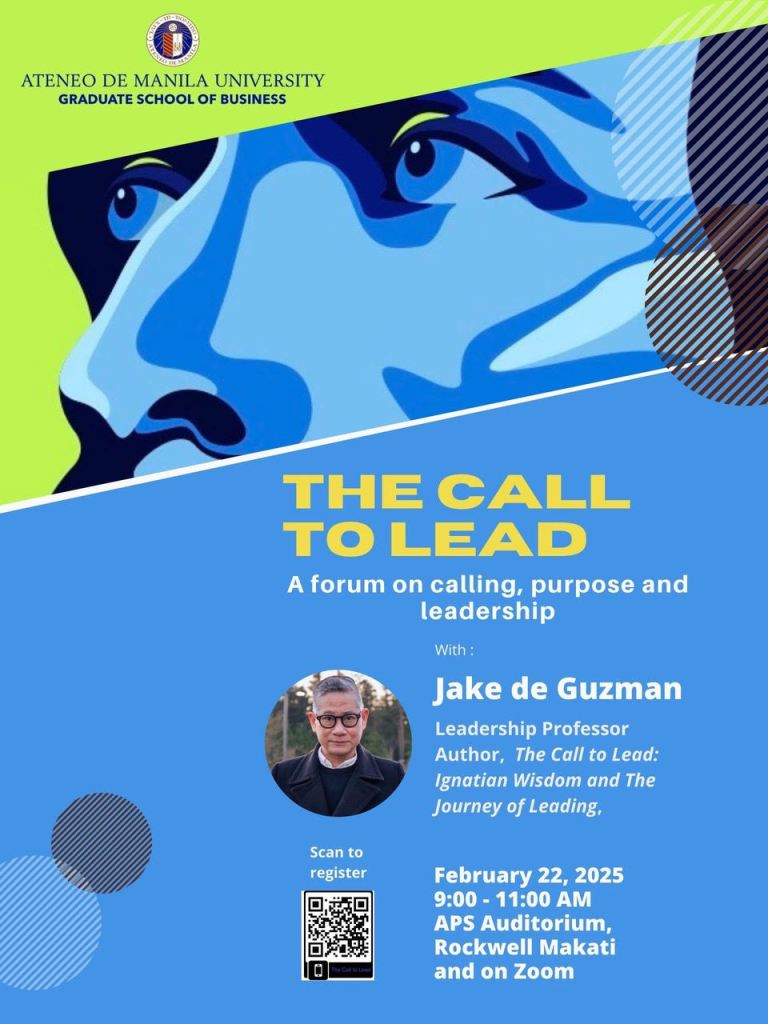 As part of the launch, the Ateneo de Manila Graduate School of Business and author and leadership professor Jake de Guzman will hold “The Call to Lead: A forum on calling, purpose and leadership.” Scan the QR code in the image above to register or click the link on the Facebook post below.