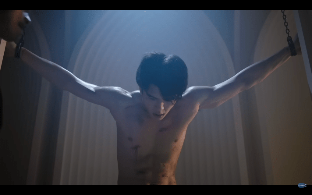 Mark goes to where Tong is being hidden, and the two of them kiss right in front of Nakan. Poor Nakan, without a bussy of his own. No wonder he skedaddled out of there. But now that he’s not in the room, we get some hurt/comfort, with Tong tending Mark’s wounds. They don’t show it, but since they wake up shirtless in each other’s arms the next day, I am assuming that they had sex the night before, Mark’s wounds be damned.