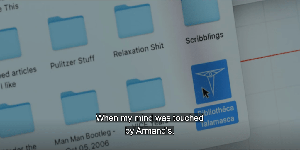 Okay, so maybe it’s part courtship stroll, because Louis and Armand flirt with each other and Jacob Anderson? Oh there is room indeed. But while Louis and Armand are looking back on that in the present, Daniel gets a message from Raglan and we get visual confirmation of the existence of the Talamasca. And yes, I know there’s a show based on the Talamasca that just started but just let me enjoy this, okay?
